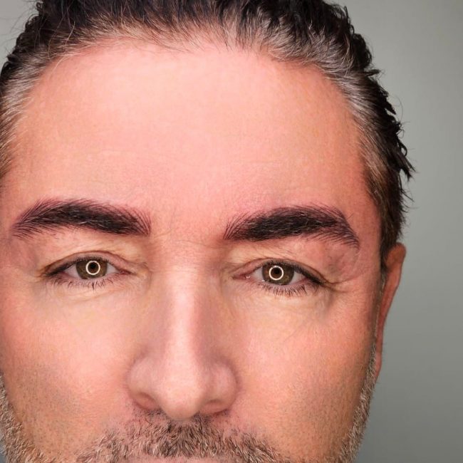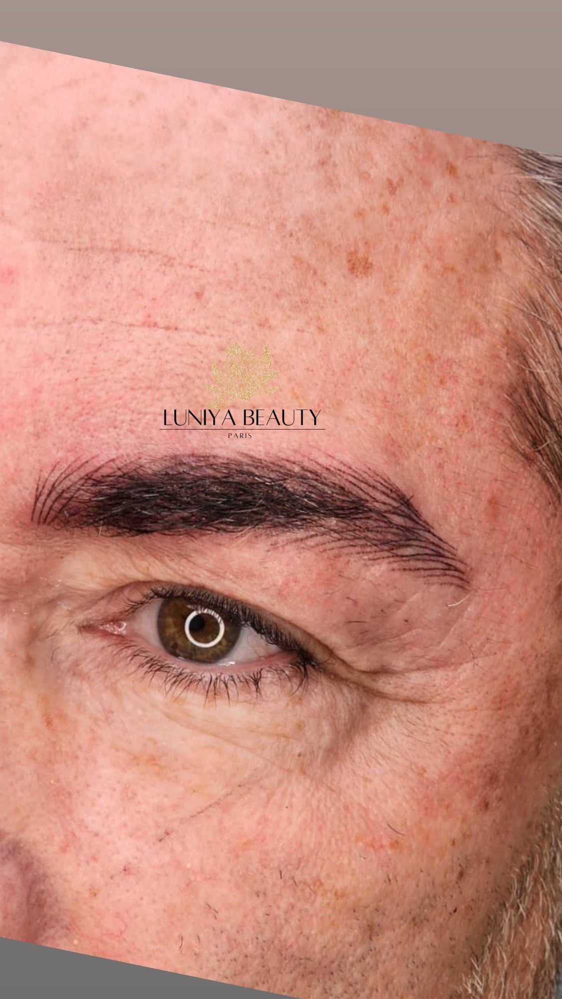 Les sourcils paraissent plus foncés, intenses et bien définis que le résultat final.